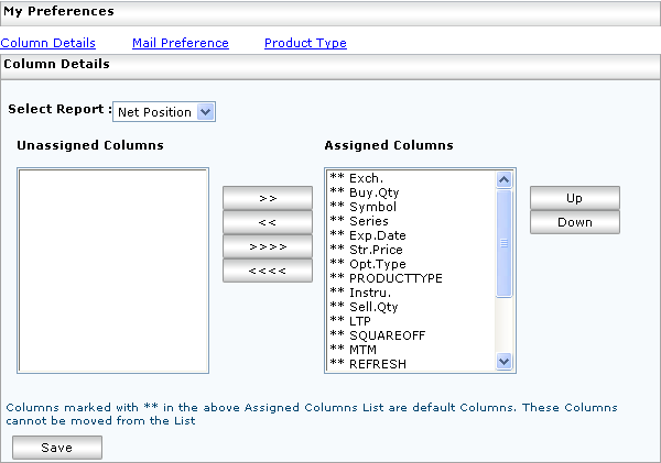 Select the Report you want to customize: Order Book, Net Position or Trade Book.
